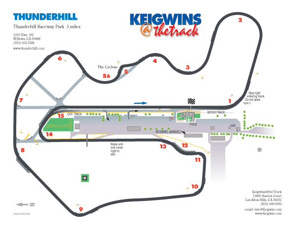 From I-5, exit at hwy 162 in Willows. Go west. Track is 7 miles down on the right.